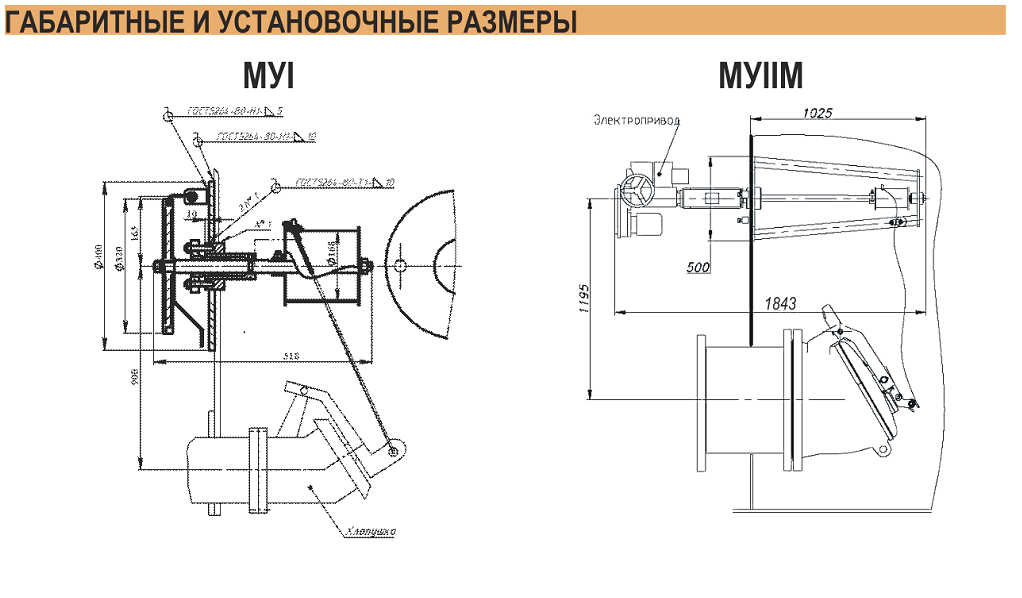 1. МУI - механизм управления с ручным приводом для хлопушек с условным проходом Ду 80, 150, 250 и 300 мм.
