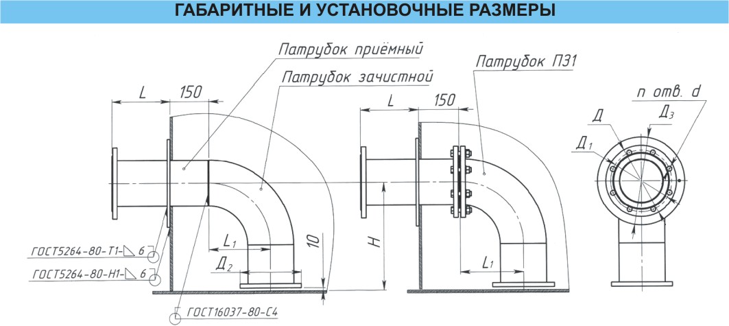 Примечание: в состав изделия входят 2 узла: патрубок приемный и патрубок зачистной. Сборка выполняется на месте монтажа.