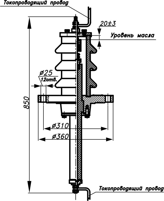 Изолятор проходной фторопластовый типа 2ИПФ предназначен для ввода электрического тока высокого напряжения в электродегидраторах для обезвоживания и обессоливания нефти. Процесс представляет собой первичную стадию обработки нефти и осуществляется на стандартных промышленных установках (ЭЛОУ).